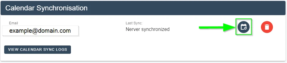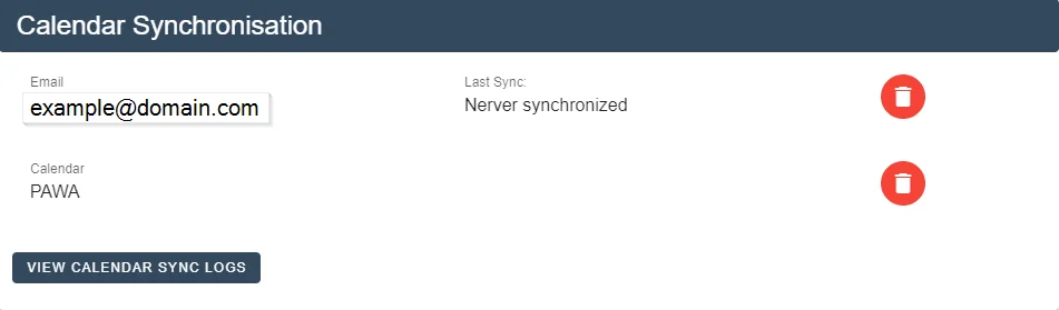 At any time, you may remove calendar and email synchronization by clicking on the trash icon.