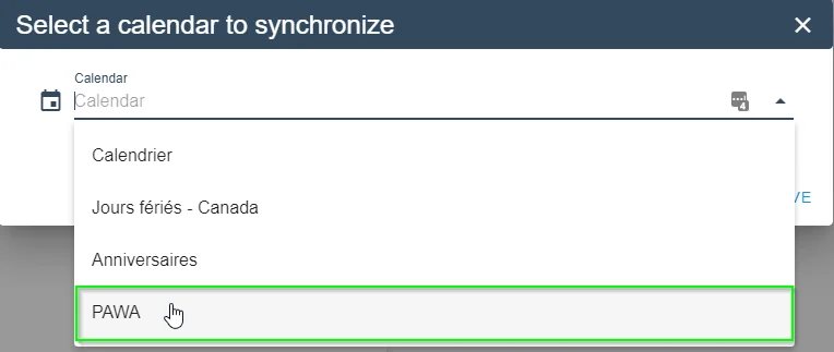 Select the Office 365 calendar with which you wish to synchronize your Pawa activities.