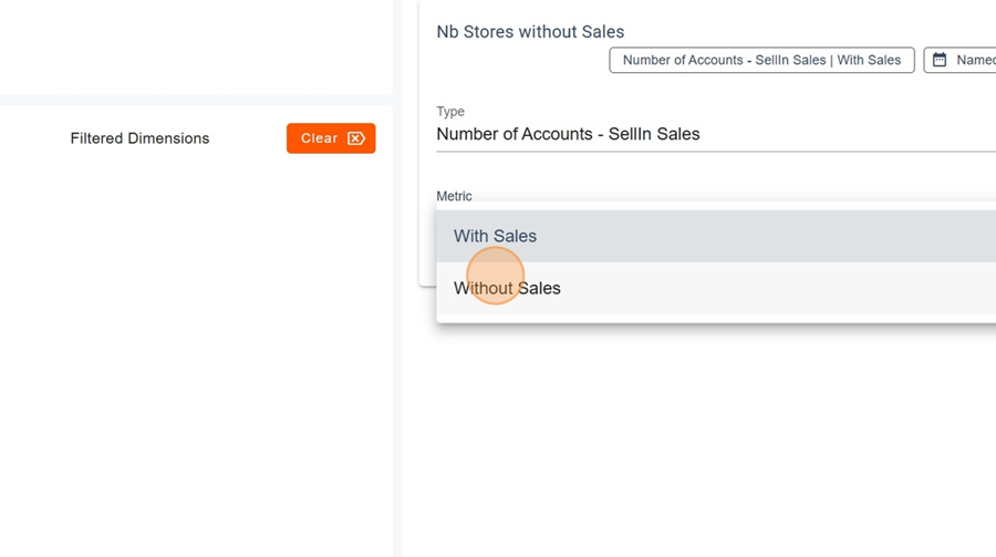 Let’s start by adding a new metric. For example, in this case, we want to see the number of stores without sales. Simply add the title, then select the type and the unit.