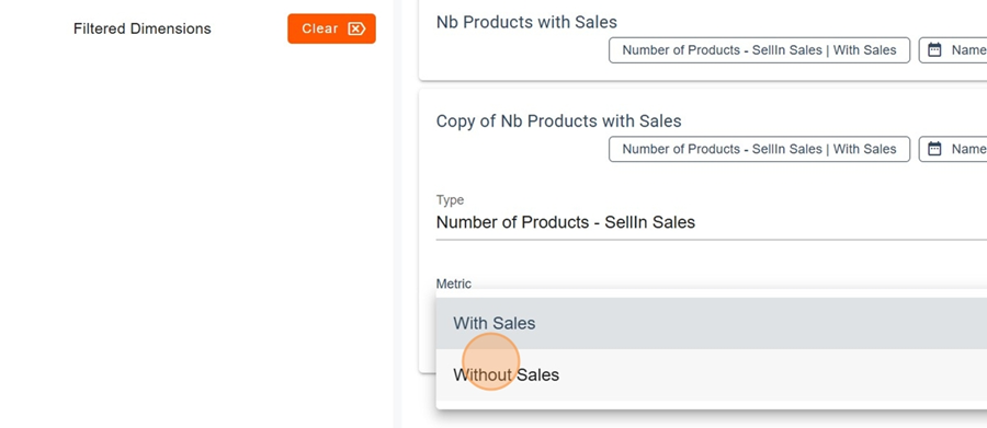 In this example, we want to compare the number of products with sales versus those without sales. We therefore created one metric for each option.