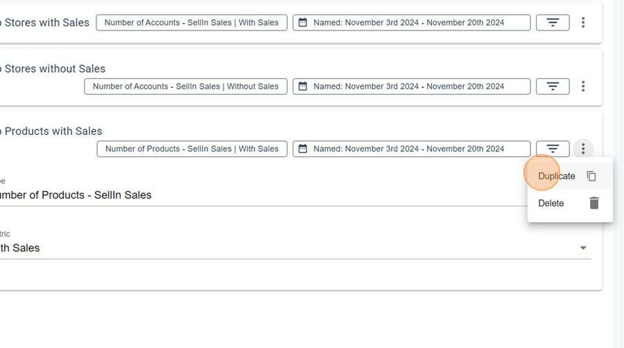 To add additional metrics, click on the three dots at the end of one of the existing metrics and select Duplicate.