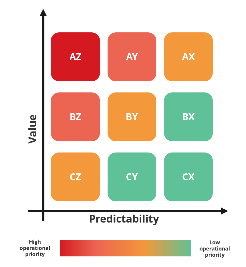 ABC/XYZ segmentation helps identify where reductions can be made safely and where stock plays a strategic role, for example in securing key revenues, strategic customers, or at-risk supplies.