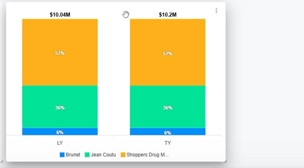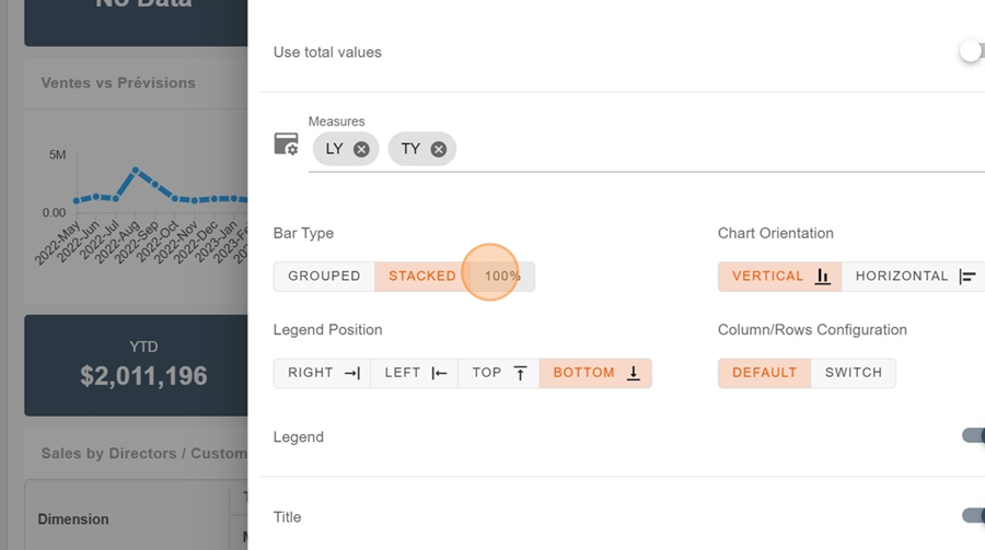 Still in the bar type selection, you can choose the 100% option, which lets you compare this time in percentages