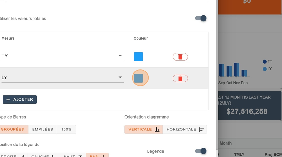 By checking the use total value option in the bar chart configs, only the totals for this year and last year will be shown.