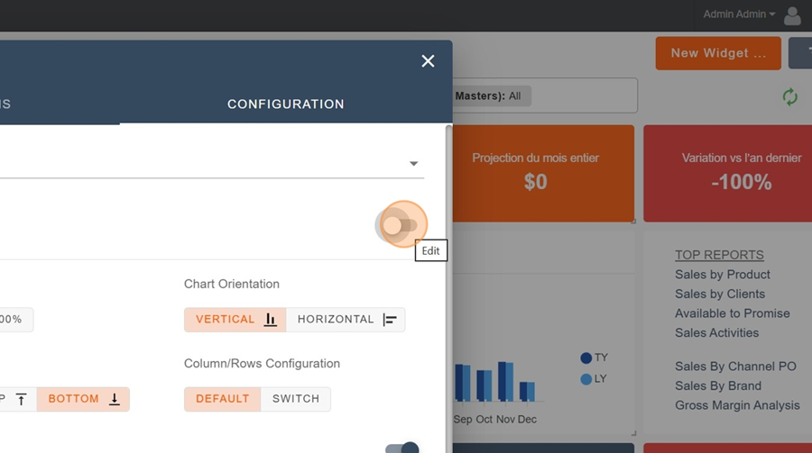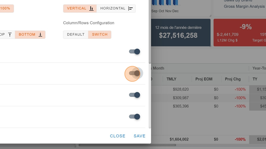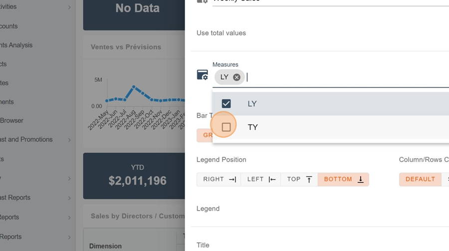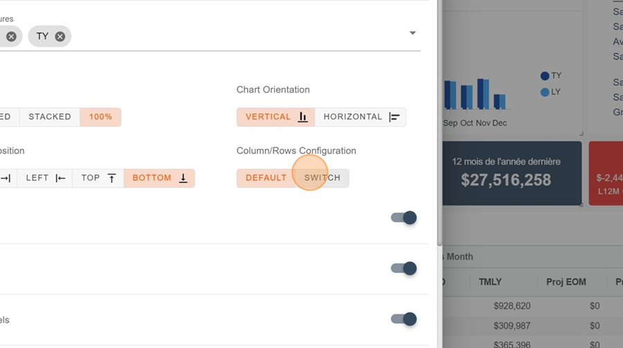Here, let’s say we want to check out the weeks on the horizontal axis, and the $ on the vertical axis, you’ll need to pick the Switch option, since the default report setup was the opposite.