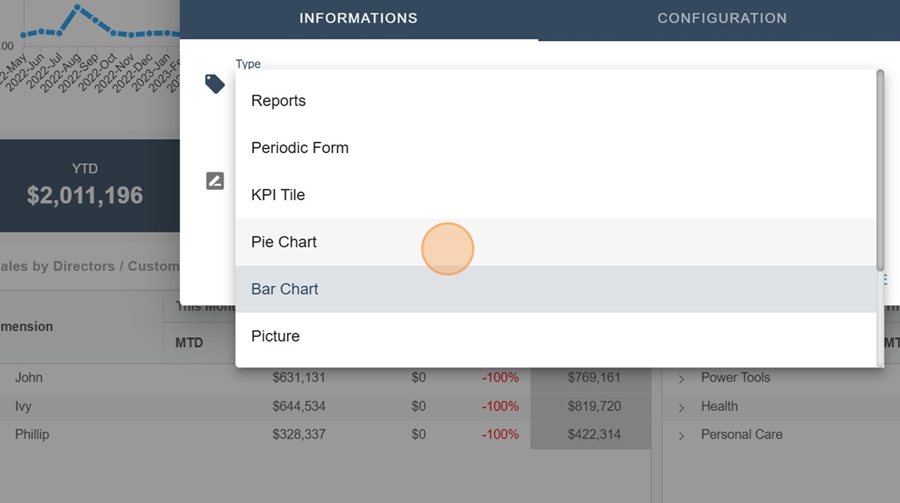 Once you've created your widget, pick the pie chart option under Type, in the information section