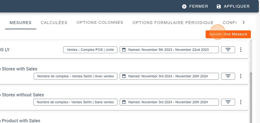 Choisissez l’option listé ou non listé et la mesure reliée.