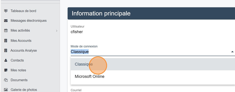 5. Si vous désirez utiliser la connexion SSO de Microsoft 365 cliquez sur Mode de connexion