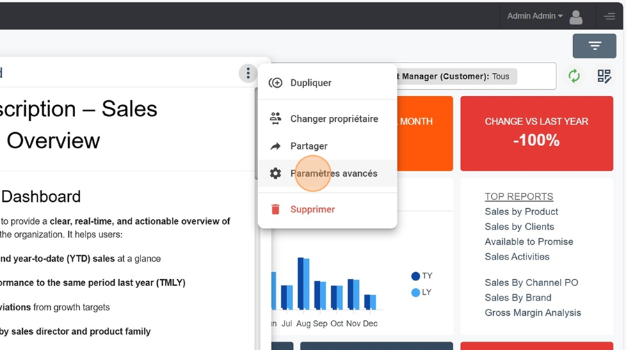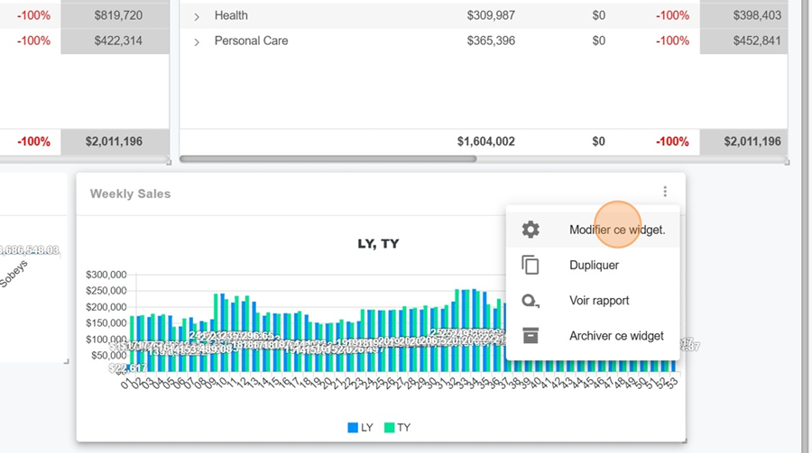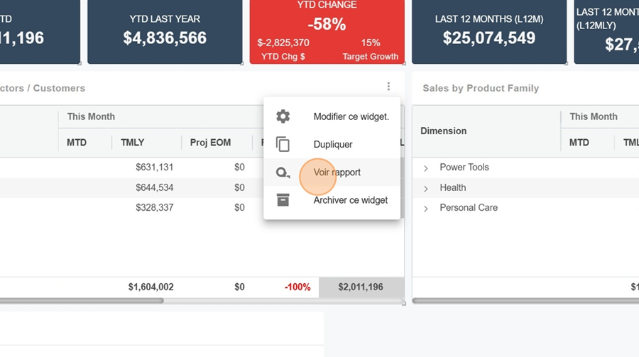 Prenons par exemple ce widget. En cliquant sur les trois points, il y a l’option de voir le rapport