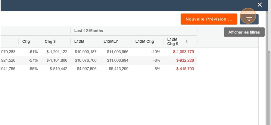 Cliquez ensuite sur l’icône de filtres en haut à droite pour les voir s’afficher