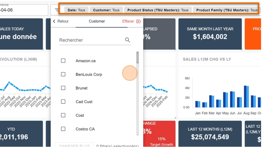 De retour dans la section Tableau de Bord, il en sera de même pour les dimensions au haut de l’écran. En modifiant une dimension, la modification se fera cette fois-ci sur l’ensemble des Widget