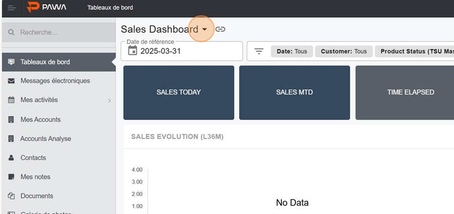 Cliquez sur le titre du tableau de bord