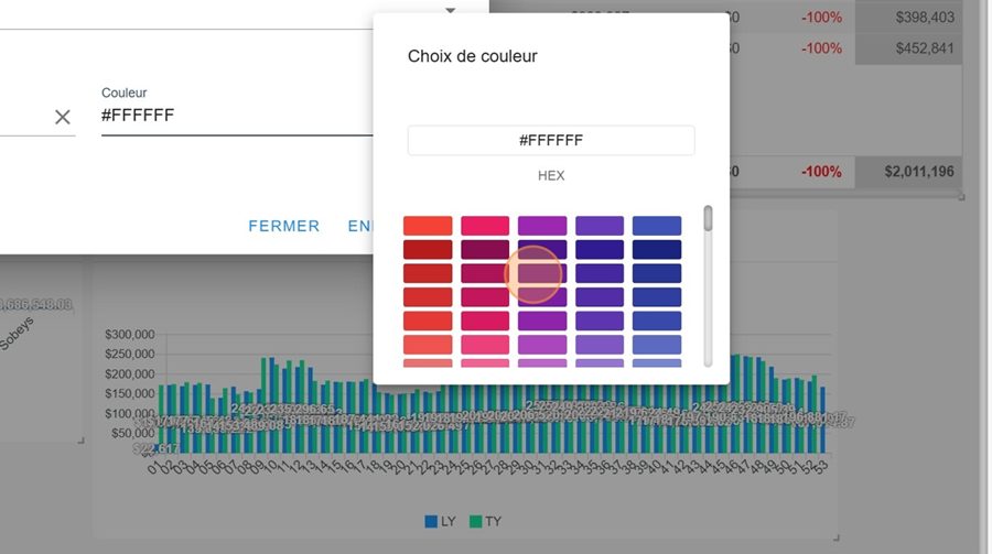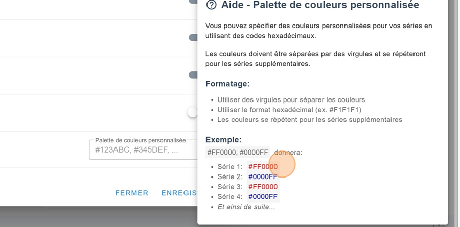 Dans la section configuration, il y a moyen d’inscrire un code correspondant à une palette de couleur personnalisée