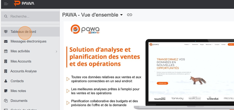 Pour créer un tableau de bord, rendez-vous dans la section Tableaux de bord