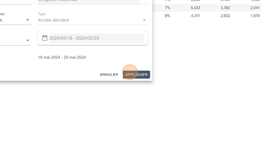Par exemple ici, en sélectionnant semaine précédente, 1 semaine et en cliquant sur appliquer