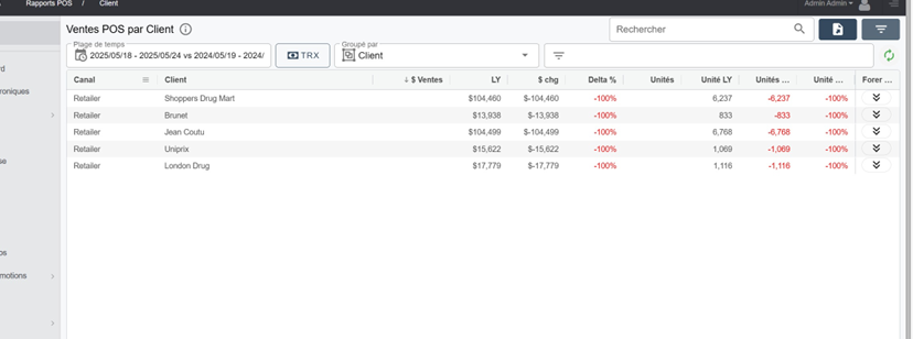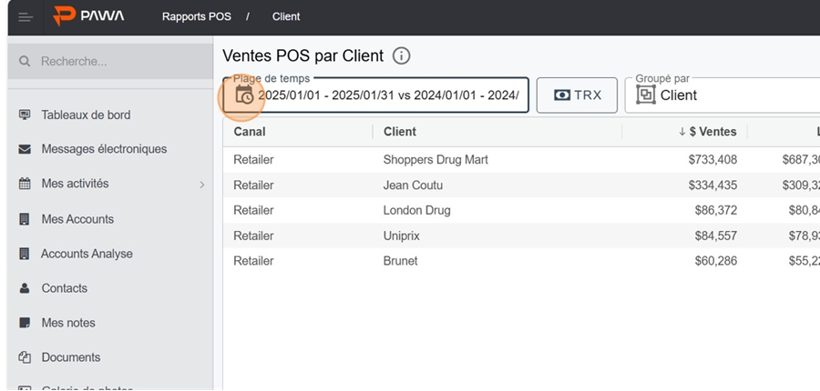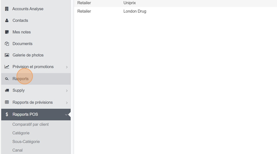 Un premier moyen de visionner les rapports par semaine est de se diriger dans Rapports POS et de sélectionner la sous-catégorie que vous souhaitez consulter
