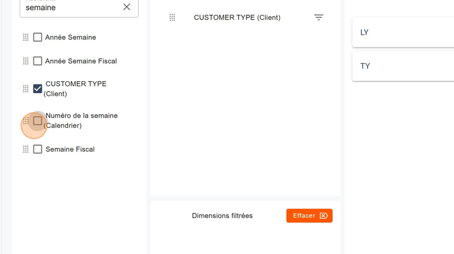 Ici, nous avons ajouté le nombre de semaines et les clients dans les dimensions visibles