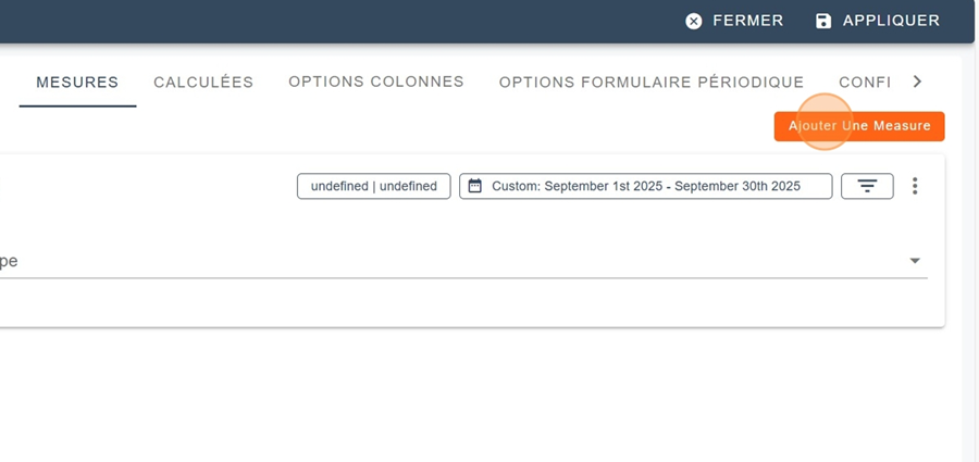 Nous pouvons par la suite ajouter les mesures en cliquant sur Ajouter une mesure, et en complétant les paramètres
