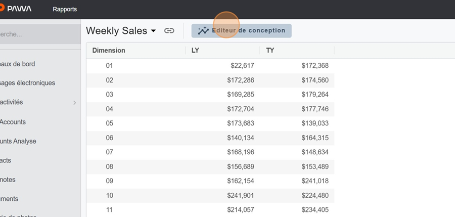Cliquez sur l’éditeur de conception pour créer votre rapport