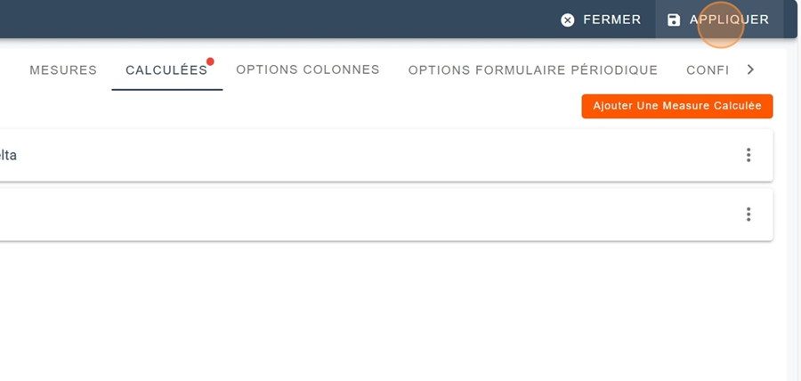 Dans la section calculées, nous ajoutons ensuite la mesure Delta et remplissons les paramètres ainsi pour faire un comparatif de l’année dernière versus cette année