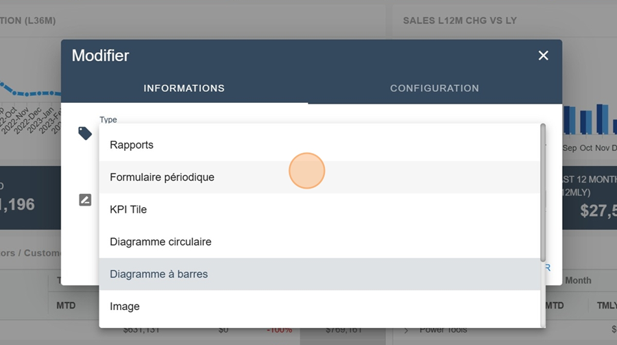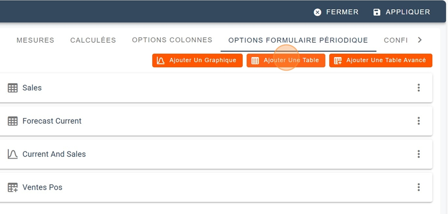 Avant d’ajouter un widget de ce type, il est primordial d’avoir un tableau périodique de créé. Nous verrons donc en premier lieu comment créer un tableau périodique, et comment l’afficher en widget dans le Tableau de Bord par la suite.