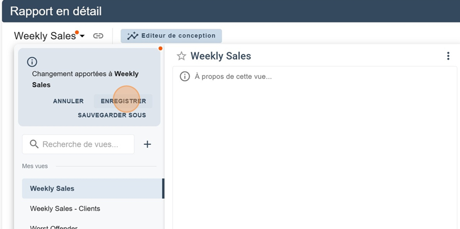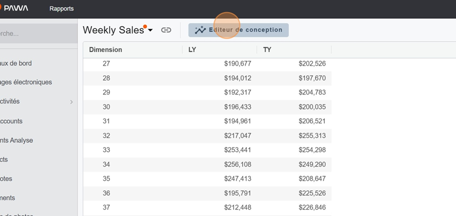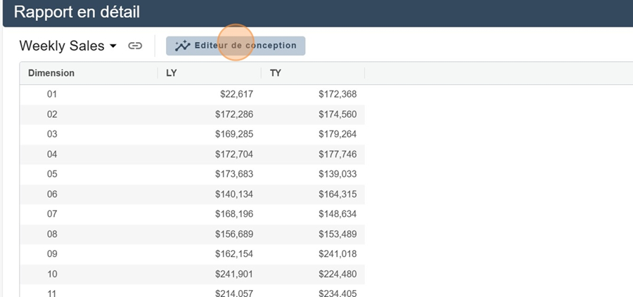 Pour créer un tableau périodique, rendez-vous d’abord dans la section Rapports et Cliquez sur l’éditeur de conception du rapport de votre choix