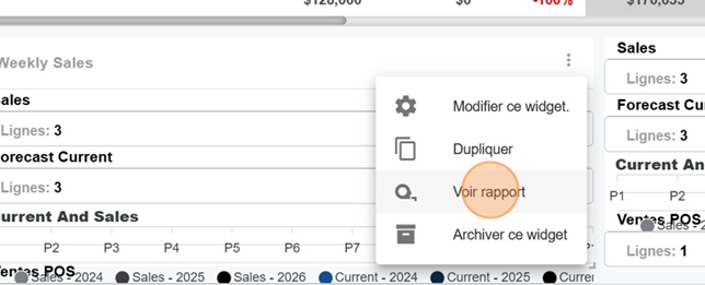 Pour modifier ou supprimer le titre du rapport, cliquez sur les trois points au coin de celui-ci et sélectionnez l’option Voir le rapport